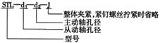 例:STL3型,主動軸孔6mm,從動軸孔8mm,整體夾緊式 型號表示:STL3—6—8—J d1、d2可按客戶要求加工